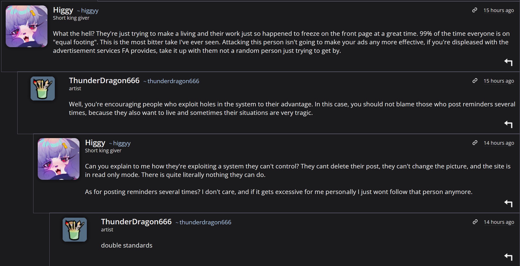 Дело именно в том, что этим худерам глубоко поебать на фурдом в целом. Фурдом это обитель денежных мешков без чувства прекрасного, поэтому что они там возмущаться и править могут, лол. На каждый твой "проебал пропорции" можно ответить "Это авторские стилистические искажения"
