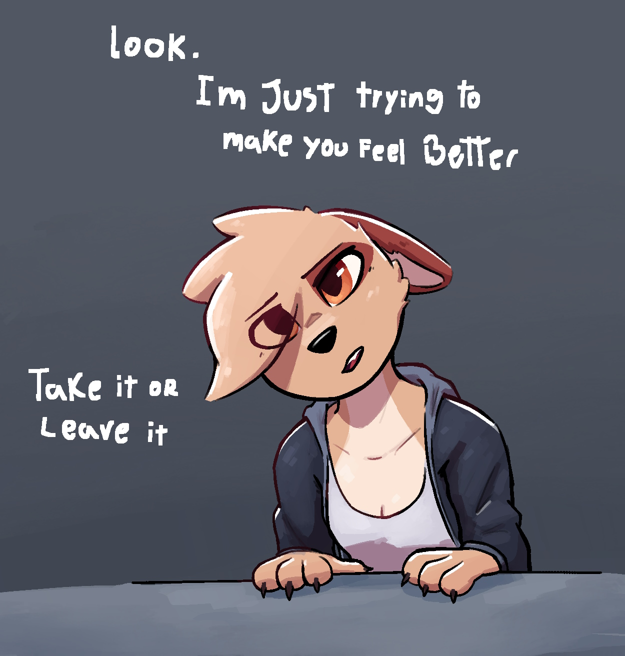 >>391525 >"ой не, я не фурри, давайте без разговоров, вы мне деньги, я вам рисунок, на этом всё, отъебитесь." Я немного переформулирую, как это лично ощущается: "Мне нравится фурри и нравится вам рисовать, но мне тяжело поддерживать общение, особенно неформальное. Очень истощает, извините."
