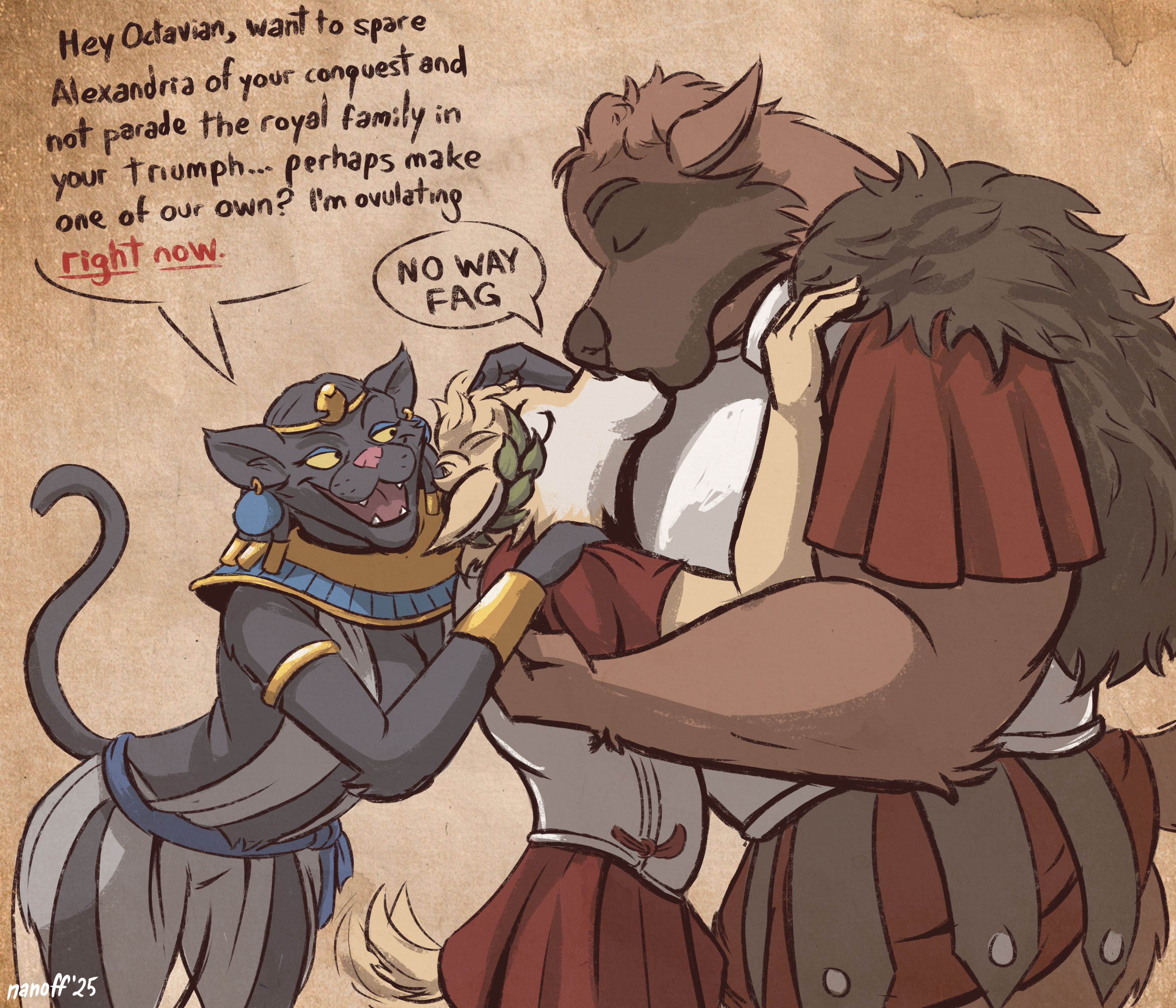 Постим фурей в первобытно-общинном, древнеегипетском, античном, мезоамериканском, аборигенском и прочем древне и не только историческом антураже. К разврату и наготе ИТТ относимся терпимо - что естественно, то не безобразно. Представителей культурного европейского/арабского/азиатского Средневековья и Ренессанса, а также любителей фентези приглашаем в дружественный тред >>197742 (OP)