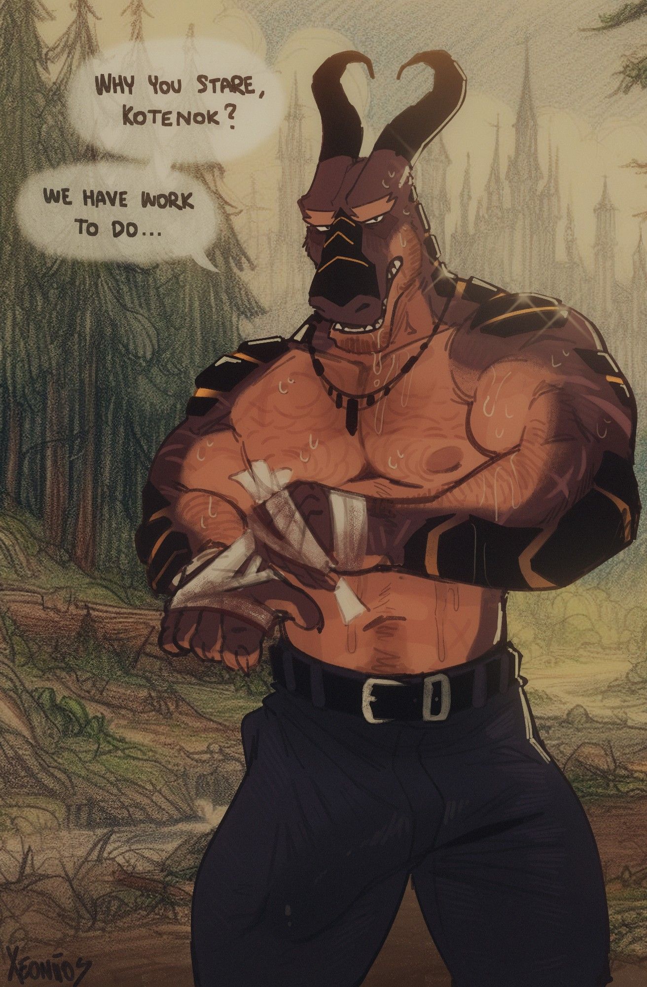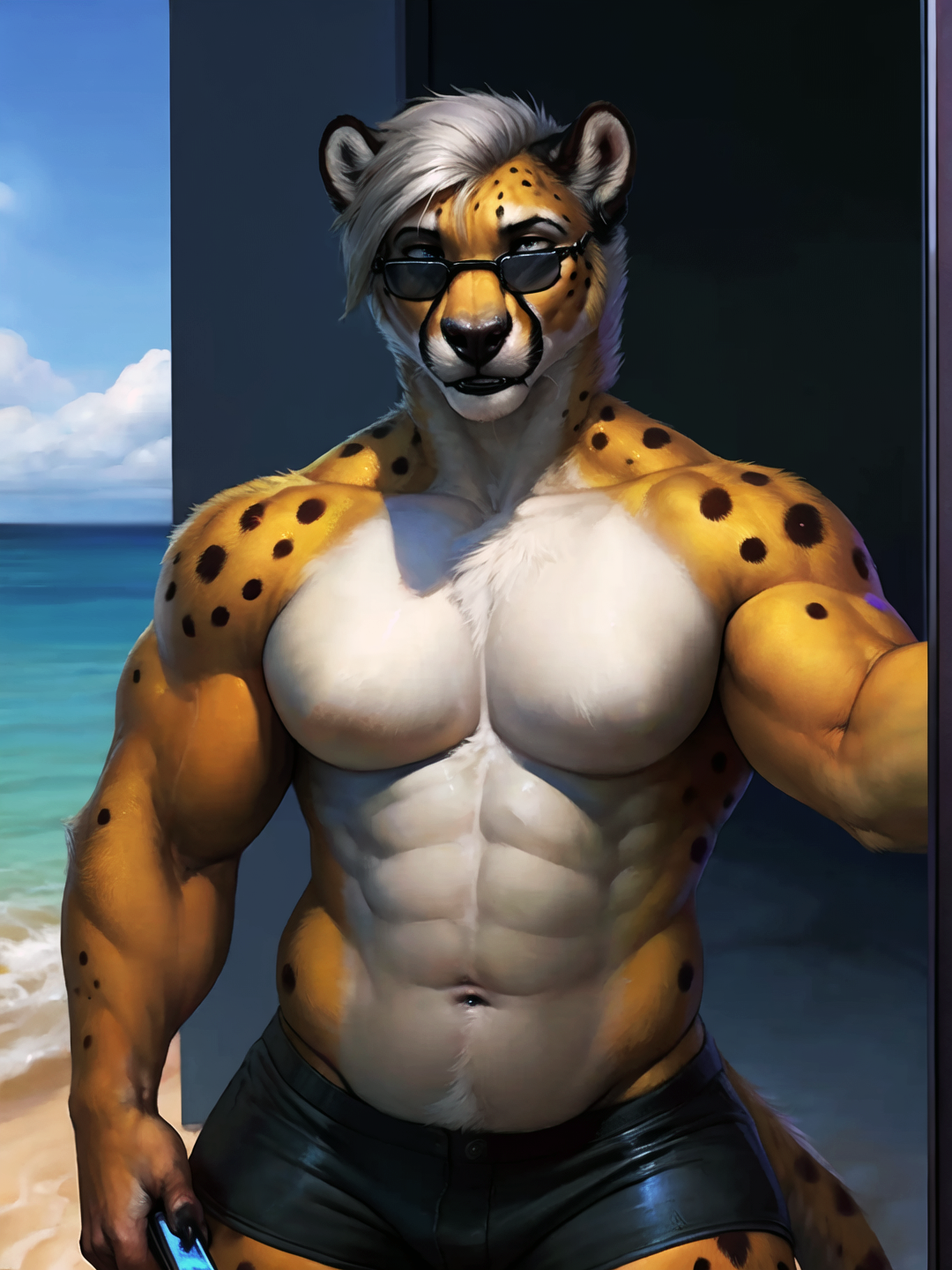 >>316470 Ты про промт? Промт вот такой: by oouna,by totesfleisch8,(masterpieces, best quality, high quality, absurd res),(detailed background),Hyena, male, big, (bodybuilder), (muscular), (athletic), seductive pose, athletic, curvy, tight t-shirt, shorts, wide thighs, bright fur, front view,(black crotch tuft, extreme shot,black hair, sitting,all fours,(full body shot, side view),on street,anthro,earrings,eyes half closed,tongue out, Negative prompt: harsh shadows,multiple legs, low quality, worst quality Модель - easyfluff_v10Prerelease, лоры, как видишь, отсутствуют, чисто на самой модельке. Ну и позы и детали сам подставляешь какие хочешь.
