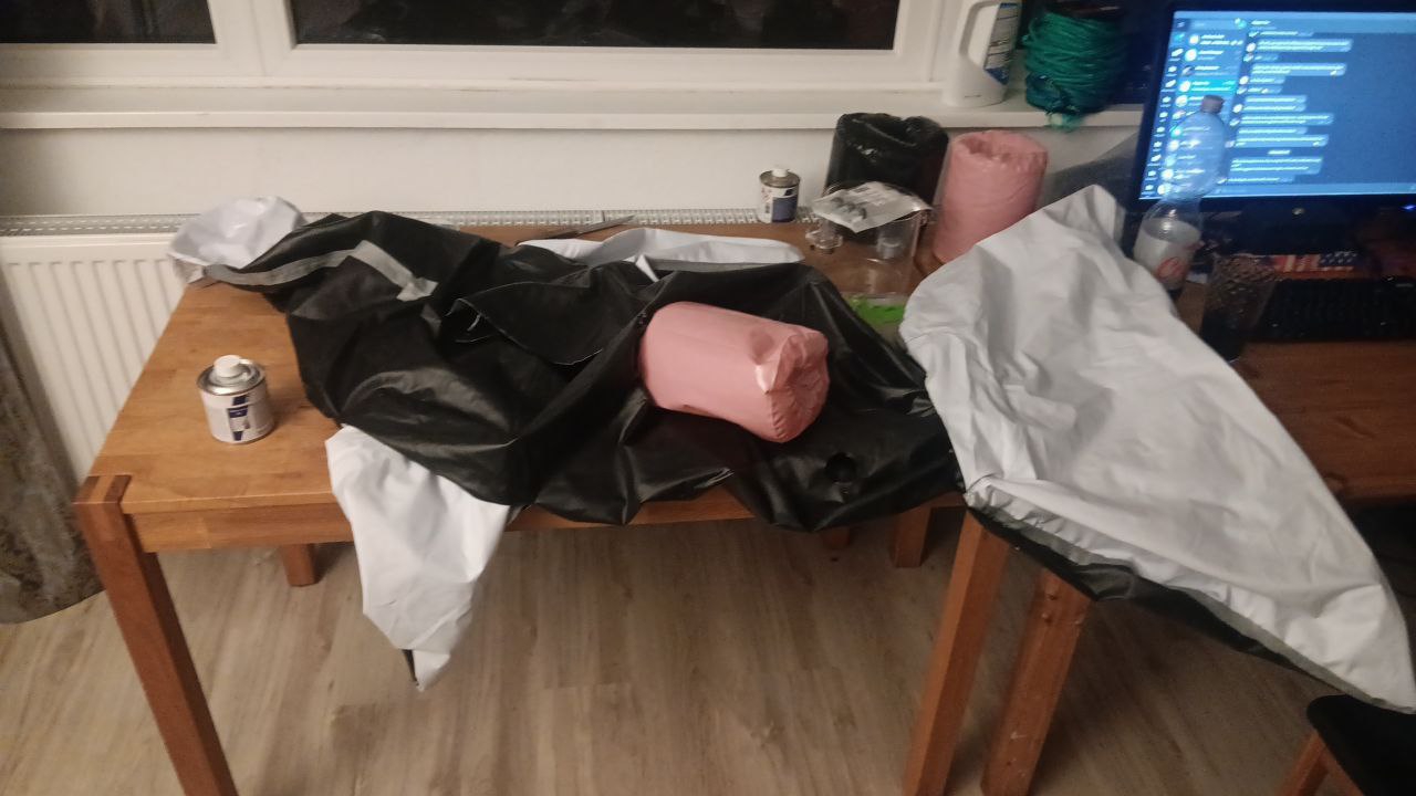 Ну шо, касатка заклеена обратно, всё, что надо надуто, прорезано и оттрахано. По ощущениям волшебно, но нужно смазку, конечно, хотя и слюна подойдёт, благо, ничего не впитывается нигде. Жаль, краска говно, если часто надувать-сдувать, то будет ужасно выглядеть. Дырочки все скрытые, можно на речке купаться, только не надо её животом кверху переворачивать. 4 отверстия, всё шикарно.