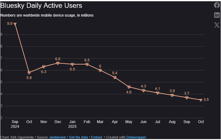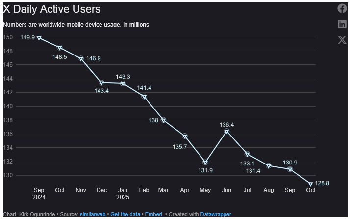 >>427809 Предполагаю, что громко сбежавшие с твиттора от злого маска/трампыни/расистов/нацистов и прочих -истов и -фобов алфавитные нетакусики и леваки думали, что за ними подтянется вся их аудитория, а этого не произошло, или произошло, но в небольшом объеме, поэтому пришлось возвращаться поджав хвост на твиттор обратно. Хотя спад активности на двух площадках наблюдается, то ли ботов чистят, то ли еще из-за чего.