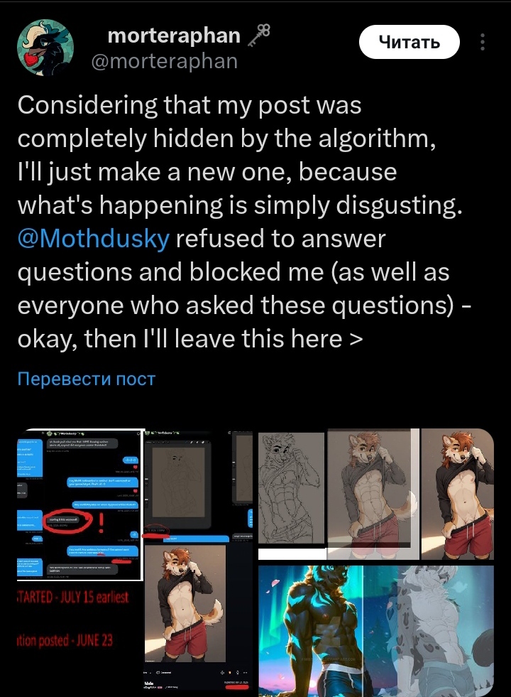 >>425890 >>425892 А я в этих тредах уже давно говорил, что сколько бы худы не визжали о том, какая же бездушная хуйня этот ваш нейроарт, и вообще не смейте со мной общаться если вы им пользуетесь или симпатизируете. Но при этом все эти худы уже давно пользуют нейронки для артов. Все. Без исключений. Только деды которым 30+ лет и нафармленная большая аудитория могут позволить себе не пользоваться нейронками, но скоре больше из-за лени и в трудностях изучения нового, чем из-за принципов. Все остальные так или иначе пользуют. У всех худов в их конфах есть раздел с нейроартом. А в особых конфах для своих, без посторонних глаз состоящих из заказчиков и потребителей их арта, спокойно обсуждают нейронки, помогают друг другу и спрашивают как лучше генерить. А потом эти же худы идут в соцсетях особо громко визжать о том, какие же нейронки зло.