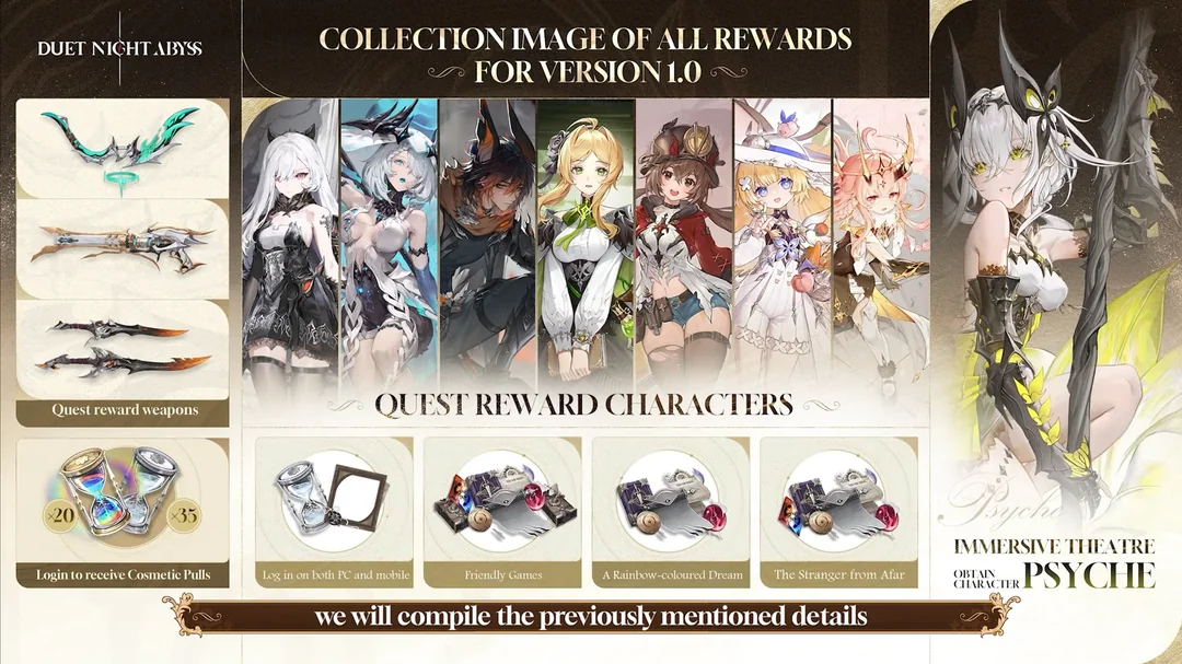 В игру введена накопительная система наград, основанная на количестве дней, в которые игроки логинились в игру. Пропущенные дни счетчик не сбрасывают. Сами награды будут доступны с 80 уровня аккаунта. Главные награды – за 180 и 360 дней – анимированные аватарки профиля, за 1000 дней логина – l2D-скин для Альтер-Крус.