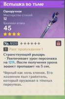 ◦ Второй сет: • 2 части: +18% к силе атаки • 4 части: Через 3 сек. после того, как персонаж покидает поле боя, его урон повышается на 50%. В бою, если поблизости не менее 6 сек. нет врагов со статусом Горение, персонаж начнет терять 10% увеличения урона в секунду, пока оно не упадёт до 0%. Если поблизости есть враги со статусом Горение, урон будет увеличиваться на 10% в секунду, пока не достигнет 50%. Этот эффект срабатывает, даже если экипированный персонаж не находится на поле боя.
