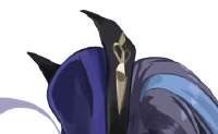 1. Двойные формы Пиро Архонта - Форма девушки: изображение, которое было распространено некоторое время назад, с золотой маской, красно-белым платьем и сине-фиолетовыми перьями, смешанными с белыми. Перья на ее голове принадлежат малиновке, а дизайн-прототип Electro Sovereign также основан на малиновке (женщина, с очень небольшим количеством экранного времени, в которую невозможно играть). - Форма взрослой женщины: красно-черная шляпа с красными перьями, пламенными зрачками, рыжими волосами с градиентом к золотому на концах, собранными в низкий хвост, и двумя длинными прядями того же цвета спереди. На груди есть украшение из сложенных белых перьев, пояса, белых колготок, черных колец на ногах, черных длинных сапог, черно-красных перчаток и красного плаща с золотыми краями.