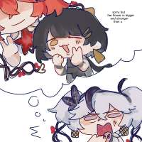 >>4212932 Алсо, рогатая+ушастая+Шорка. Так играй. Ещё заметка: ушастая быстрее заливает себе форте через хэви атаки (холд лкм), чтобы быстрее можно было коорды запустить. >>4212934 Можно даже не качать особо, важен только лишь бонус сета, можешь чисто лвл качнуть до +10/15, не открывая пока сабстаты. Или вообще некачанный повесить даже.