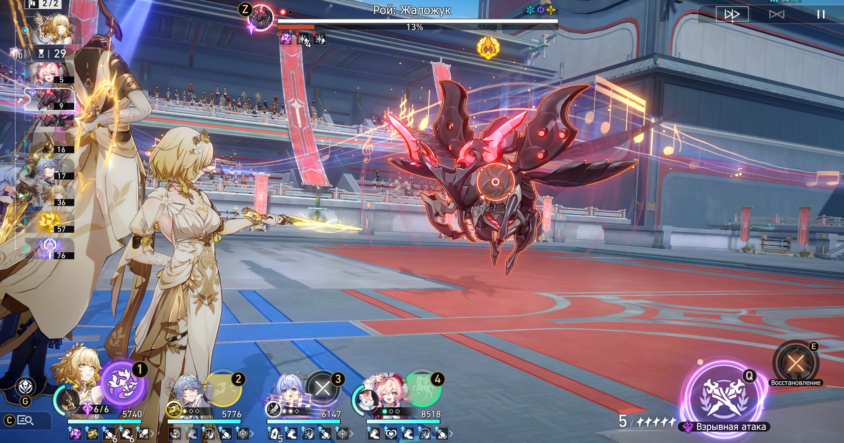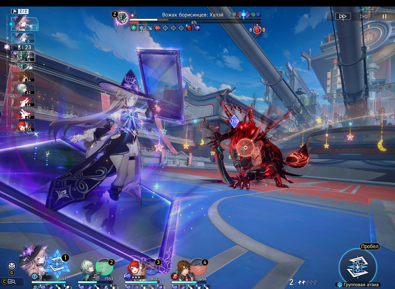 Немного потупил со второй половиной, не хватало урона. Оказалось надо не спешить пробивать Хулэя чтоб он снес хп кому-то и Критша подфармила стаков для Лисяо. С такой страткой с избытком хватает урона.