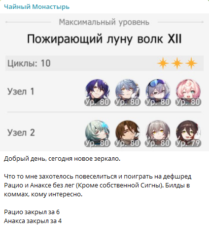 >>5091435 Зачем ты в пример приводишь челов с эйдалонами (рррря нищитова) и даже того, кто ниасилил 12? Зеркало от зеркала, зависит от бафа и пула подходящих под врагов персов, очевидно. Штабильно закрывать без проблем, смен пачек и прочего дрочева - уже прерогатива эйдолонобояр.