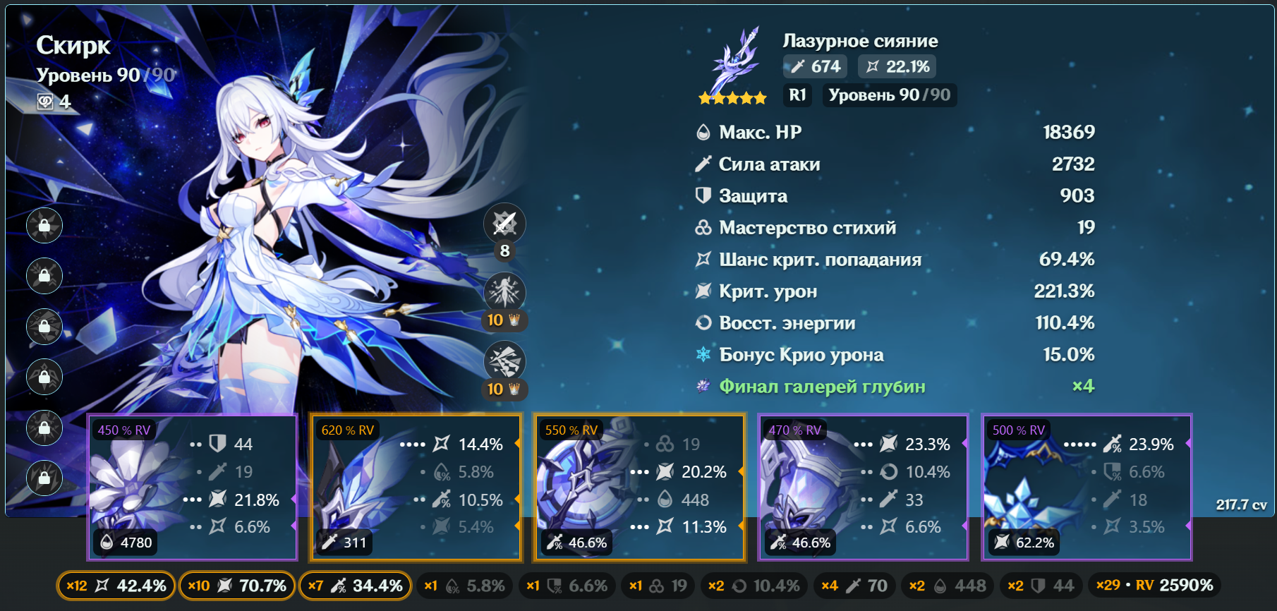 >>5092364 О, спасибо. Артефакты конечно просто недосягаемые. У меня даже с С2 Богиней пока чуть хуже, но ротация почти та же. Вообще если накапливать Скирк «энергию» по ходу ротации, то тогда бафа Фурины еще на меньше времени хватит, но даже и тут на всю стойку не хватает; поэтому всовываю ульту Фурины в середину (и страдаю от нехватки речаржа даже с 201% ER). Интересно бы еще с Шенхе посмотреть было.