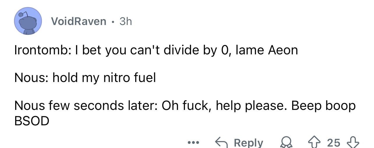>>5096600 Почитай: https://honkai-star-rail.fandom.com/wiki/Solitary_Waves_Theory Нет, то что Нус априори может всё просчитать нихуя не факт. Точнее это может быть и факт, но строго до того момента как Нус придет пизда. А то что Нус может избежать и захочет избежать любой пизды - далеко не факт.