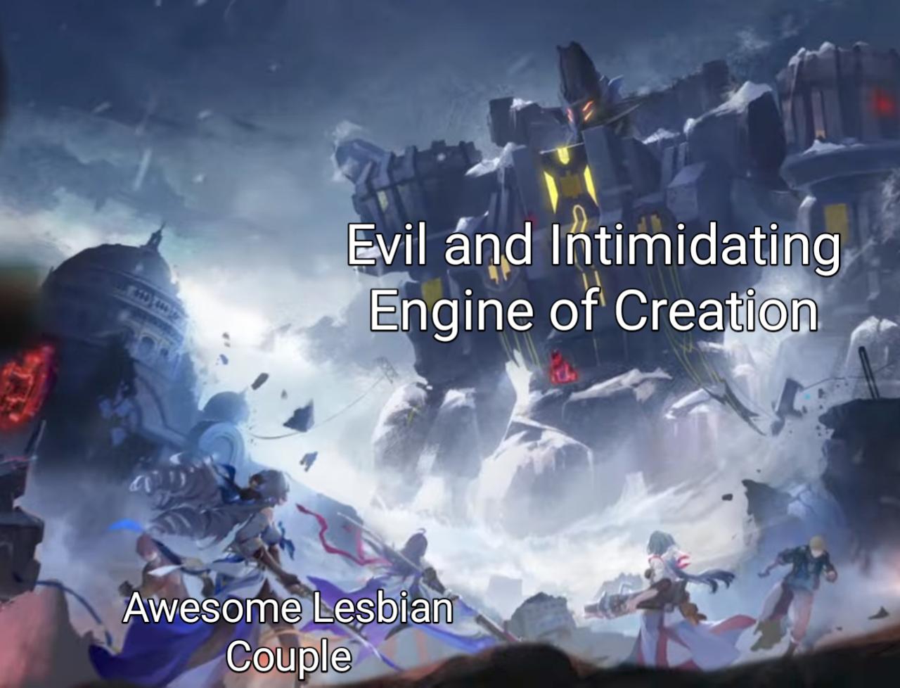 Тлдр была указка в конце 3.0 наши лоровички хотят устроить войну 4х эонов нейм 1 2 3 4. Твоя задача написать сюжет который приведет к этому и вот чму дали возможность свои инцельные фантазии воплотить