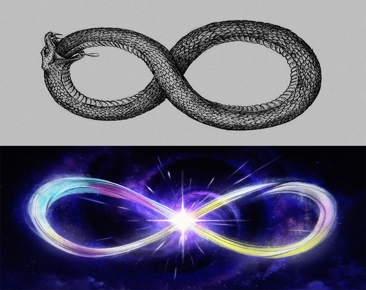Это происходит потому, что вычисление будущего основано на тех же самых данных, что и сама модель. При попытке дойти до конца истории скипетр попросту ломается, начинает выдавать сбои в виде битого кода. А попытка расшифровать этот код с помощью самого же скипетра и порождает Парадокс Уробороса.