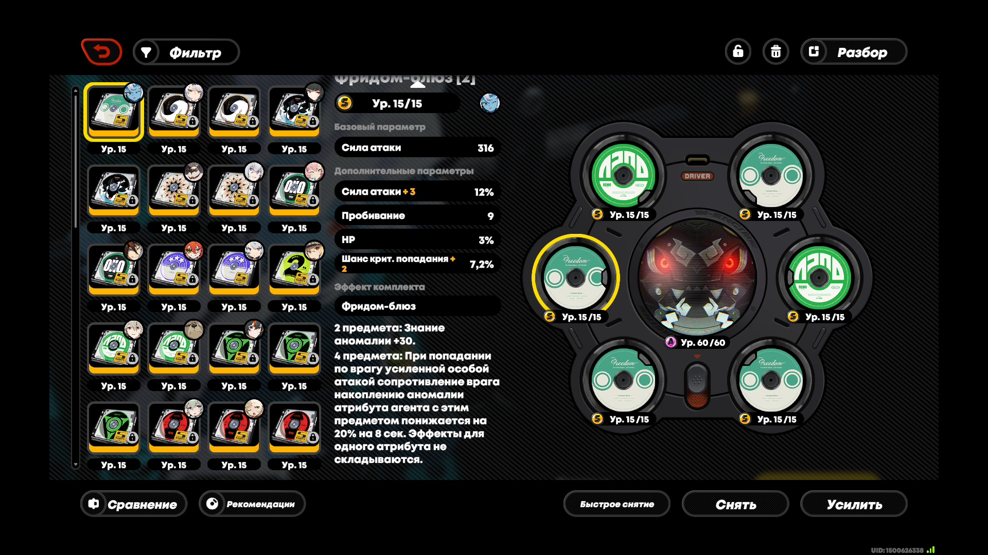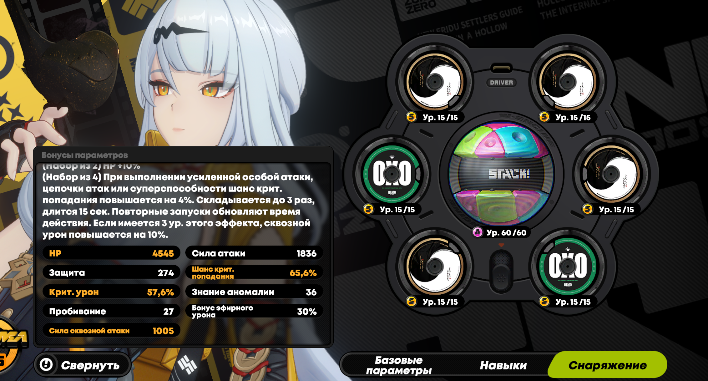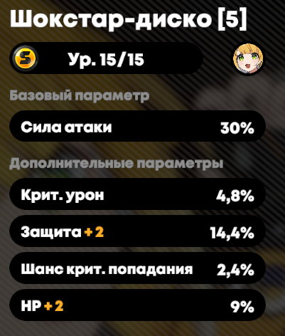 Пришёл проёб на 40 крутке и классические 75 после. Вот так прокачал, без сигны, с какашкой, 2 диска гормон-панка + шестой тоже на атаку, не прокачал ещё шестой кор, будет как раз 50% крита и 3400 атк.