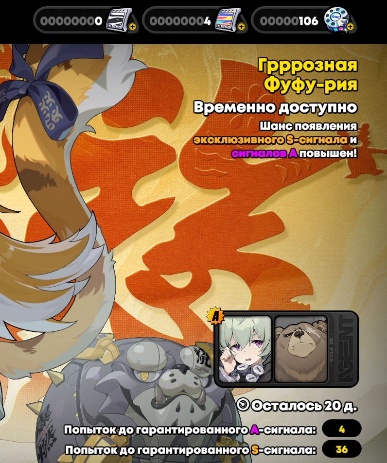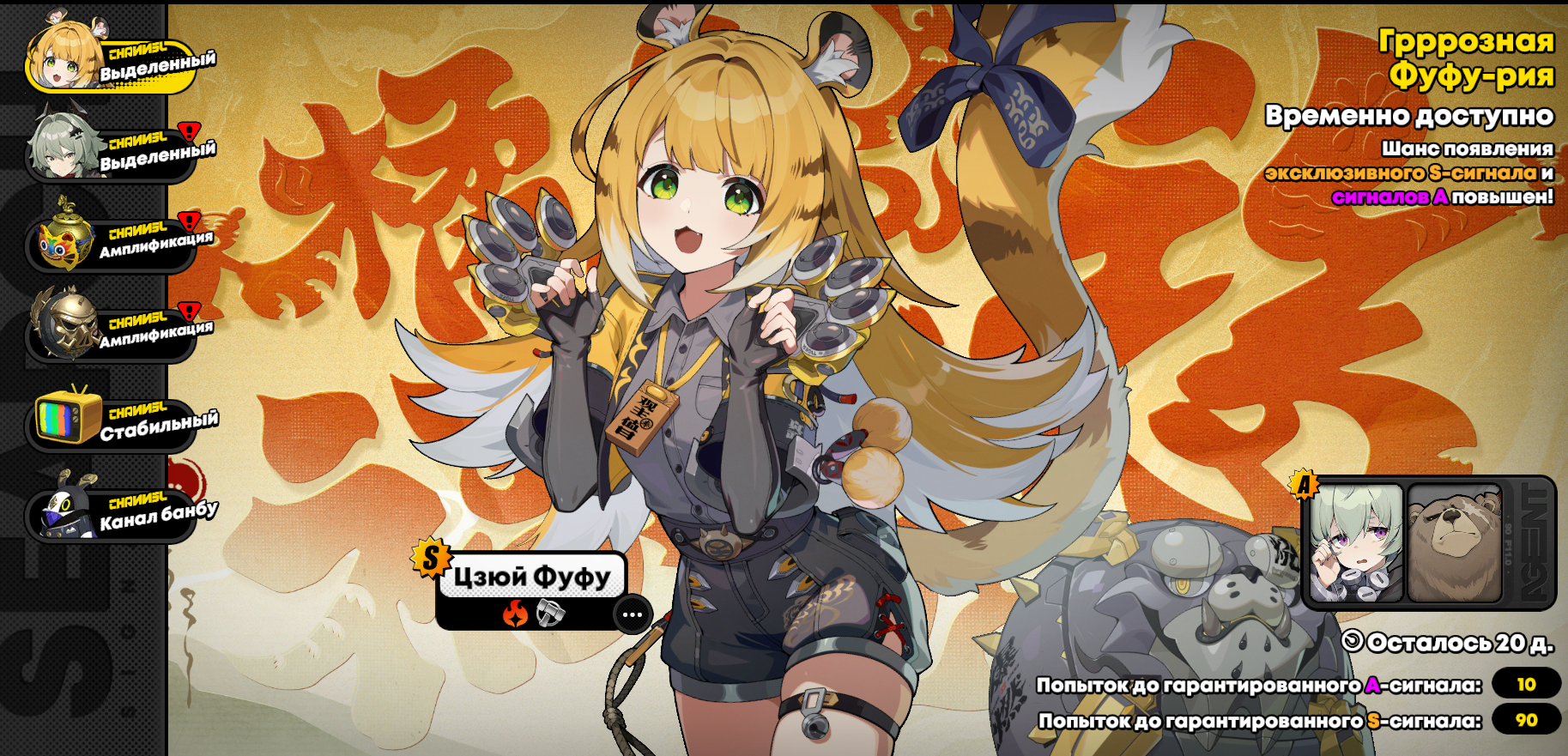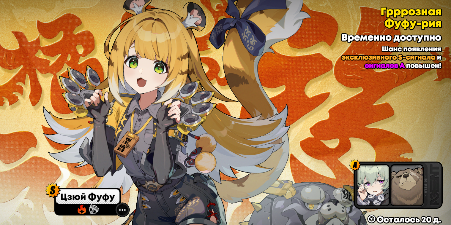 Выделенный канал «Грррозная Фуфу-рия» | С 25.06.2025 12:00 до 15.07.2025 14:59 (время сервера) повышена вероятность получить в поиске сигнала эксклюзивного агента ранга S Цзюй Фуфу (Устрашение, огонь)!