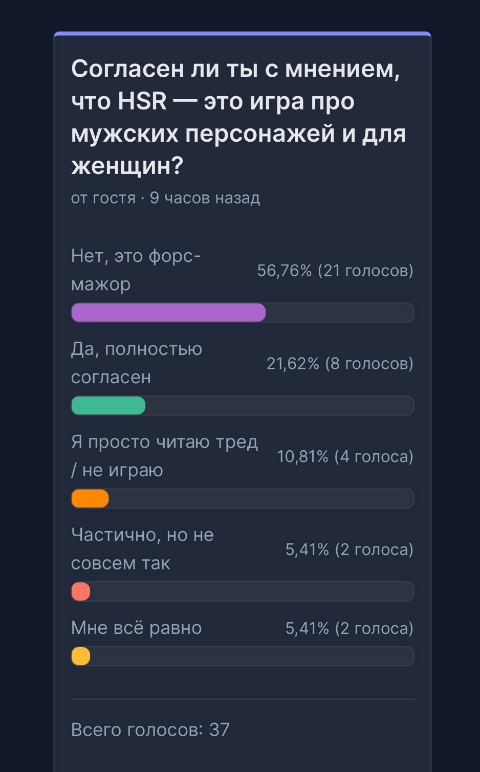 Почему мне хонкай с каждым днём нравится всё больше чем Г? Я ничего не могу с собой поделать. В Г хожу как на работу - в хонку отдыхать и радоваться жизни. Почему так?