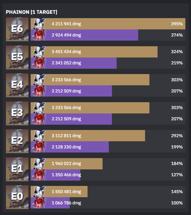 >>5106334 В отличии от прочих, насчёт Фаенона советовать ничего не буду - думай сам. В треде говорили что он наоборот топ для ньюфага, потому что самодостаточный "one man army", которого можно с любыми говно-бафферами четверками поставить, поэтому здесь: >Планирую заменить гг на Фаенона и с двумя топ писями ехать катком по сюжету. В чём не прав? прав во всём, НО его потолок низкий в отличии от других дамагеров, поэтому в лейте и эндгейме может превратиться в кирпич пылящийся на аккаунте.