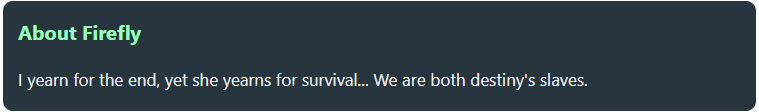 На данный момент я котирую как гигачадов Анаксу и Гала. А Вельт просто усталый путешествующий скуф на пенсии. Мб Аргенти +- ещё, но он слишком позер, скорее персонаж для разбавления атмосферы, которого тяжело воспринимать всерьёз.