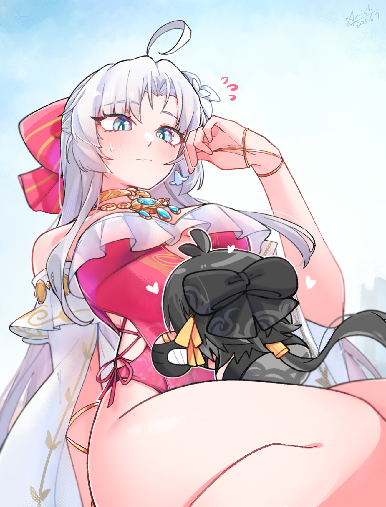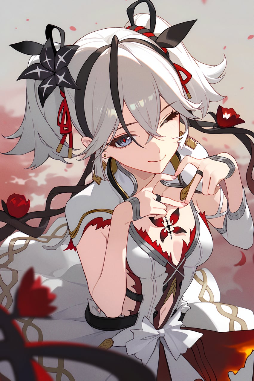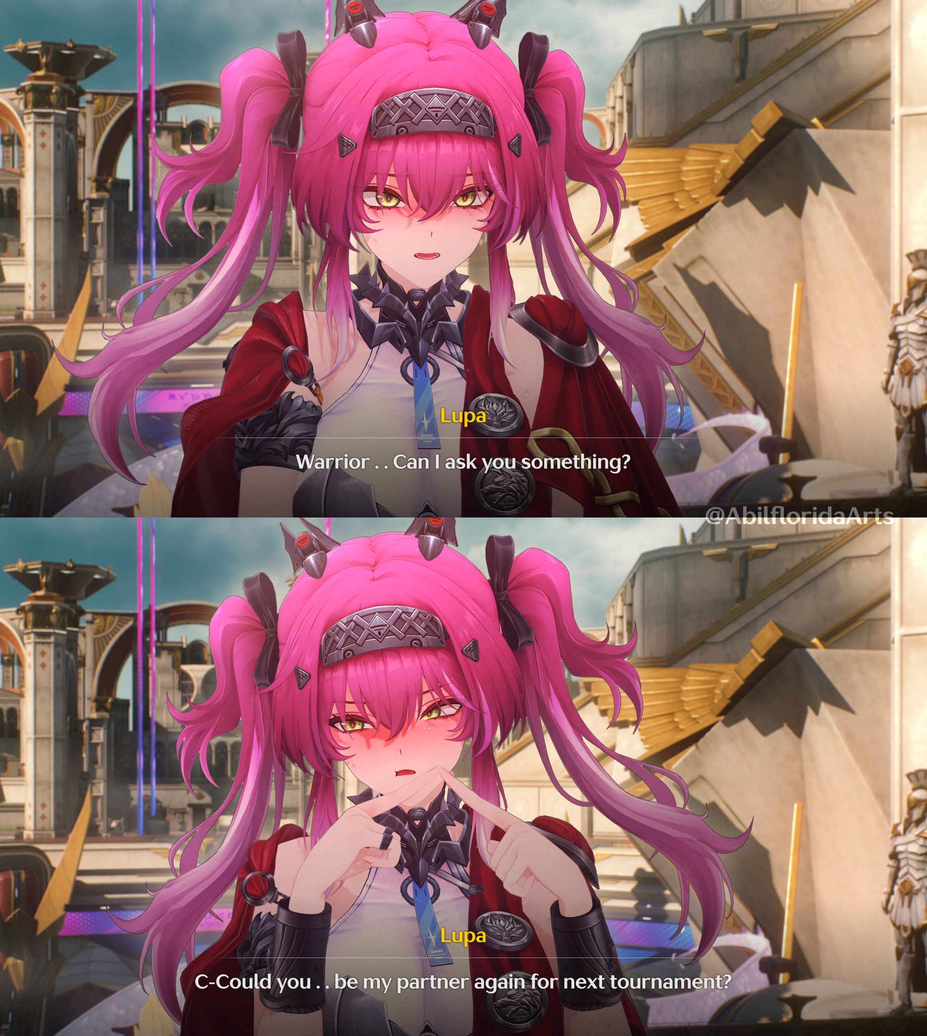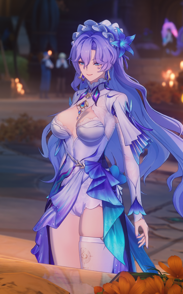 У меня она вообще вот с такой фигней бегает потому что тогда не хватило на сигну и стандарт круток нет чтобы забрать золотую пуху. Но я решил что буду коптить и крутить ей с6, я реально в неё влюбился, это впервые со мной в гачах, раньше просто нравились персонажи в том же г крутил много кого но никого полюбить не удалось, а чтобы прям влюбиться в одну это первый раз.