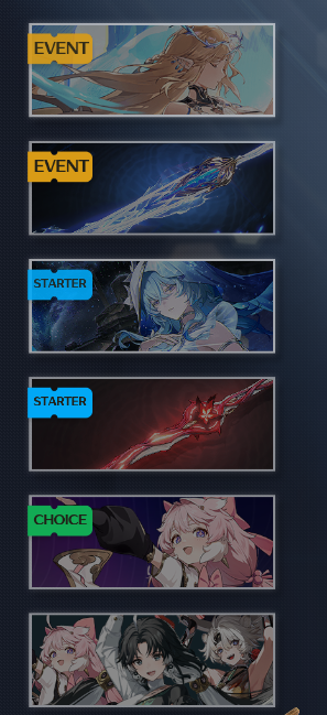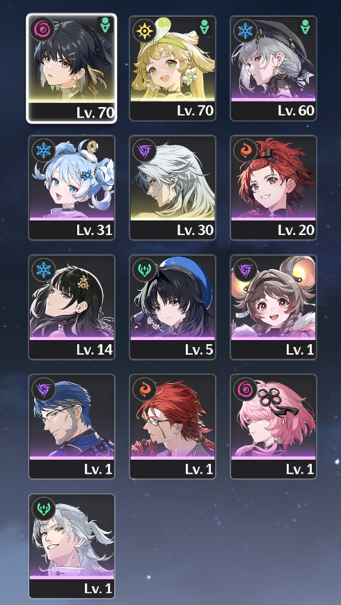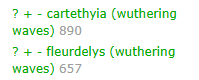 First half: Phrolova, Roccia, Taoqi, Lumi, Yaunwu Second half: Cantarella, Brant, Danjin, Mortefi, Yangyang Note: Not 100% sure on 4 star accuracy -Ranny-