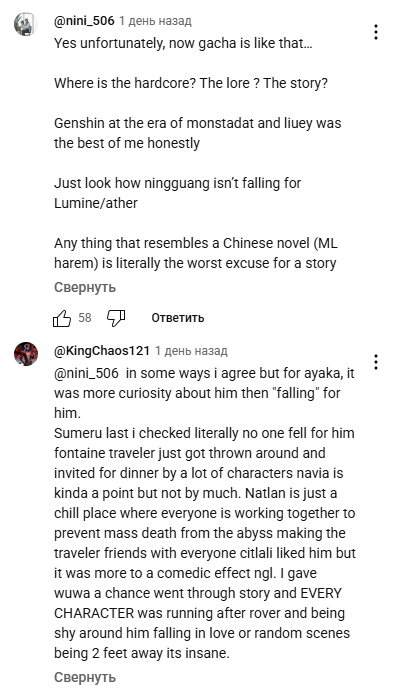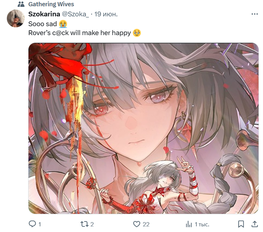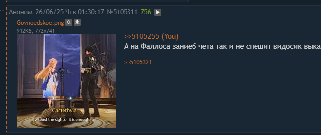 А вообще вы какие-то претенциозные снобы. Ну да Г говнище полное, несовременное, но вы пытаетесь на зло маме уши отморозить - главное быть не такими как в Г. А то что Г самая успешная гача за всю историю, хоть и скатилась в полный шлак вы почему то игнорируете. Равно как игнорируете и большую фанбазу, которая и поддерживает популярность. А ограничивая общение итт, вы только приводите игру к еосу, потому что непопулярные игры долго не живут.