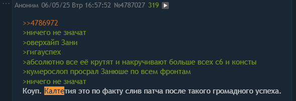 >Сказали, что зани сильнее какого-то перса >Весь тред бахнул в слезах >Сказали, что зани популярный перс >Весь тред бахнул в слезах Может проблема не в зани, а в вас? Она с анонса вас долбоебов так сильно протыкает, что вы ей тысячу кликух форсите.