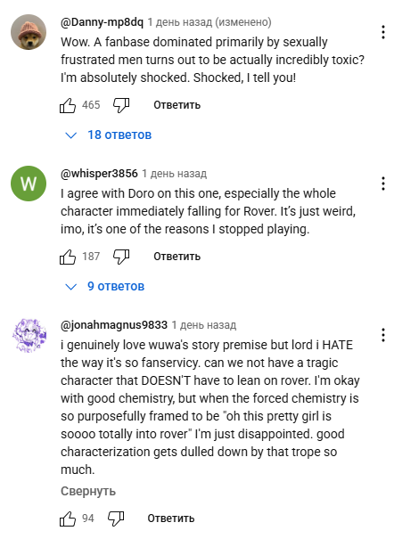 Лисно я после вувы не могу переносить хоехуйню, от нее воняет паймонами, уебищным геймдизом и хрюнити вместо моделек. Серьезно такое чувство что с каждым месяцем сисов и всяких кукичей подсасывающим им в хоеслопе все больше и больше, сука я оч надеюсь что в вуву это комьюнити не пролезет, хотя уже хуевая тенденция судя по посту выше со скринами ютуб комментов.