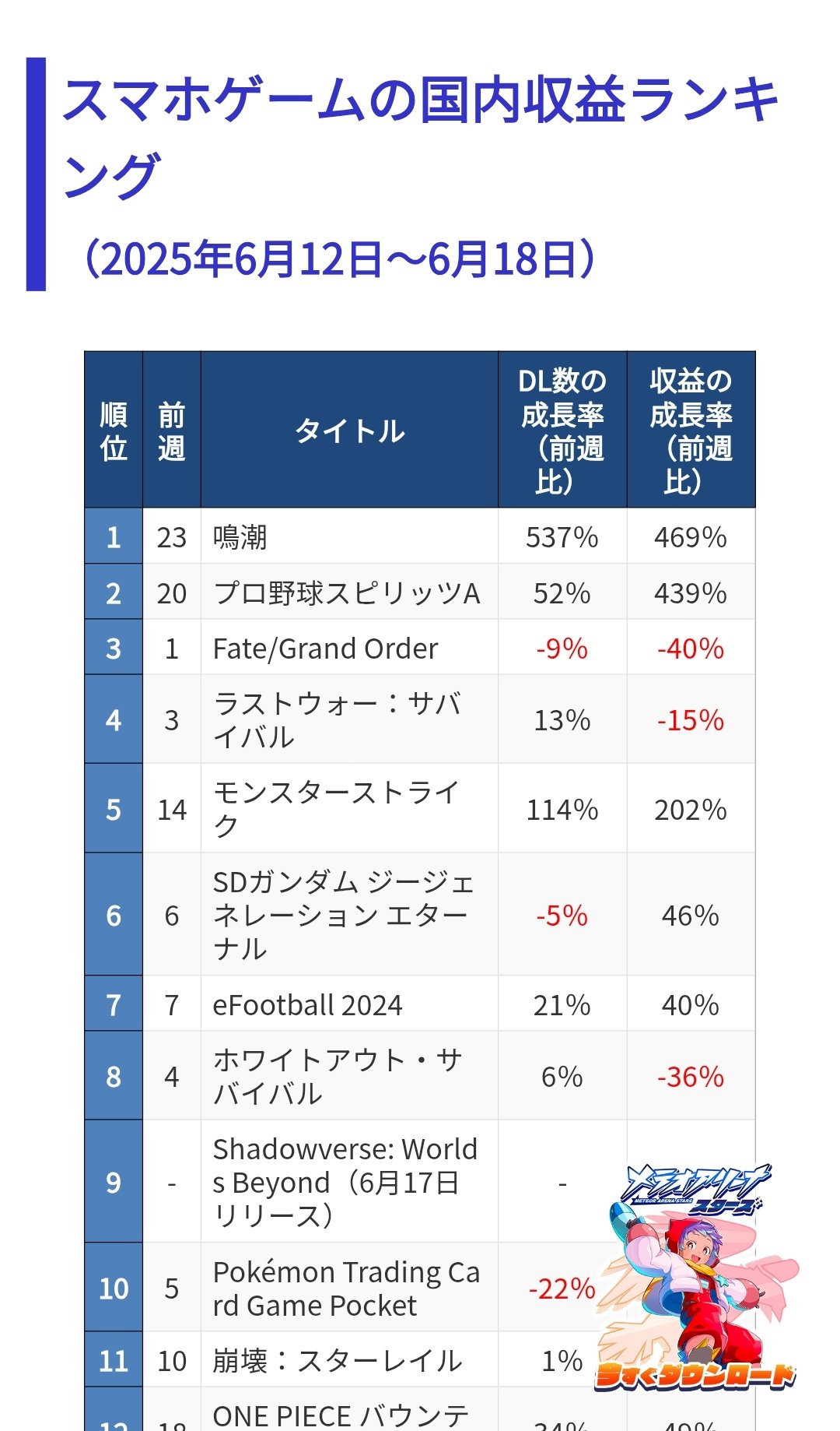 Smartphone game sales ranking analysis (June 12–June 18, 2025). This week's number one is "Wuthering Waves." Also introducing the global download ranking from January to March.