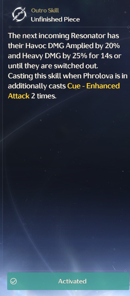 S4: Torch – The Guide to a New Path After using a Sonance Skill, increases all team members' attack by 20% for 30 seconds.