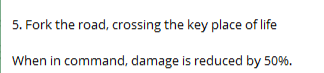 S5: Forked Road – The Crucial Passage Through Life While in the Command state, damage taken is reduced by 50%.