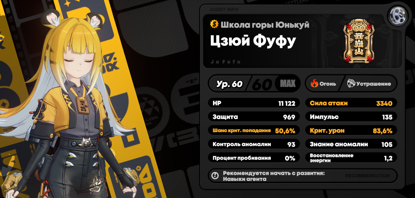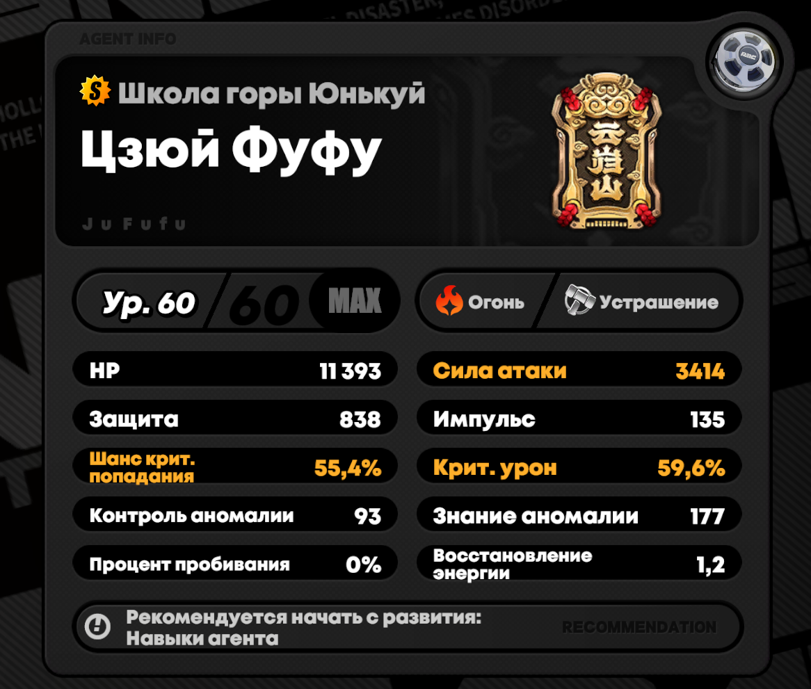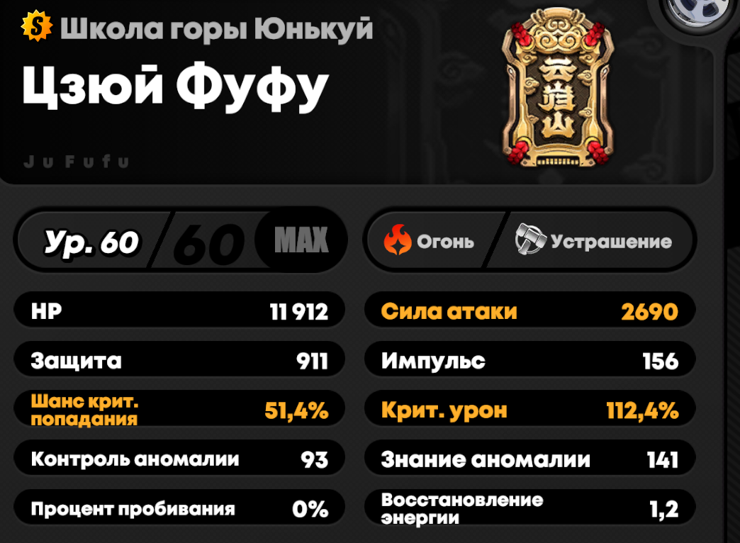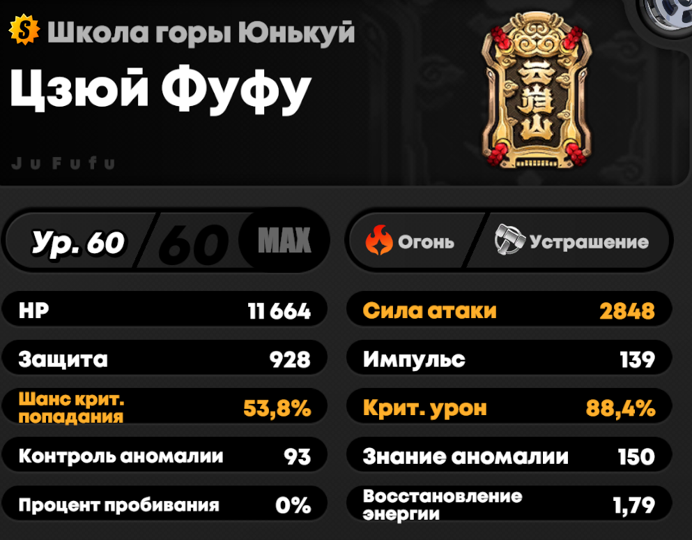 Когда начальная АТК Цзюй Фуфу больше или равна 2800 , каждые дополнительные 100 АТК дополнительно увеличивают КРИТ Урон на 5% , вплоть до максимального дополнительного увеличения в 30%.