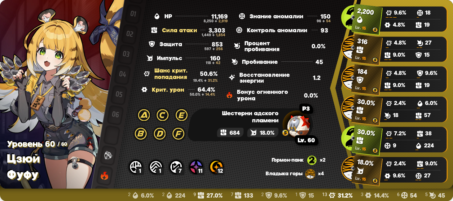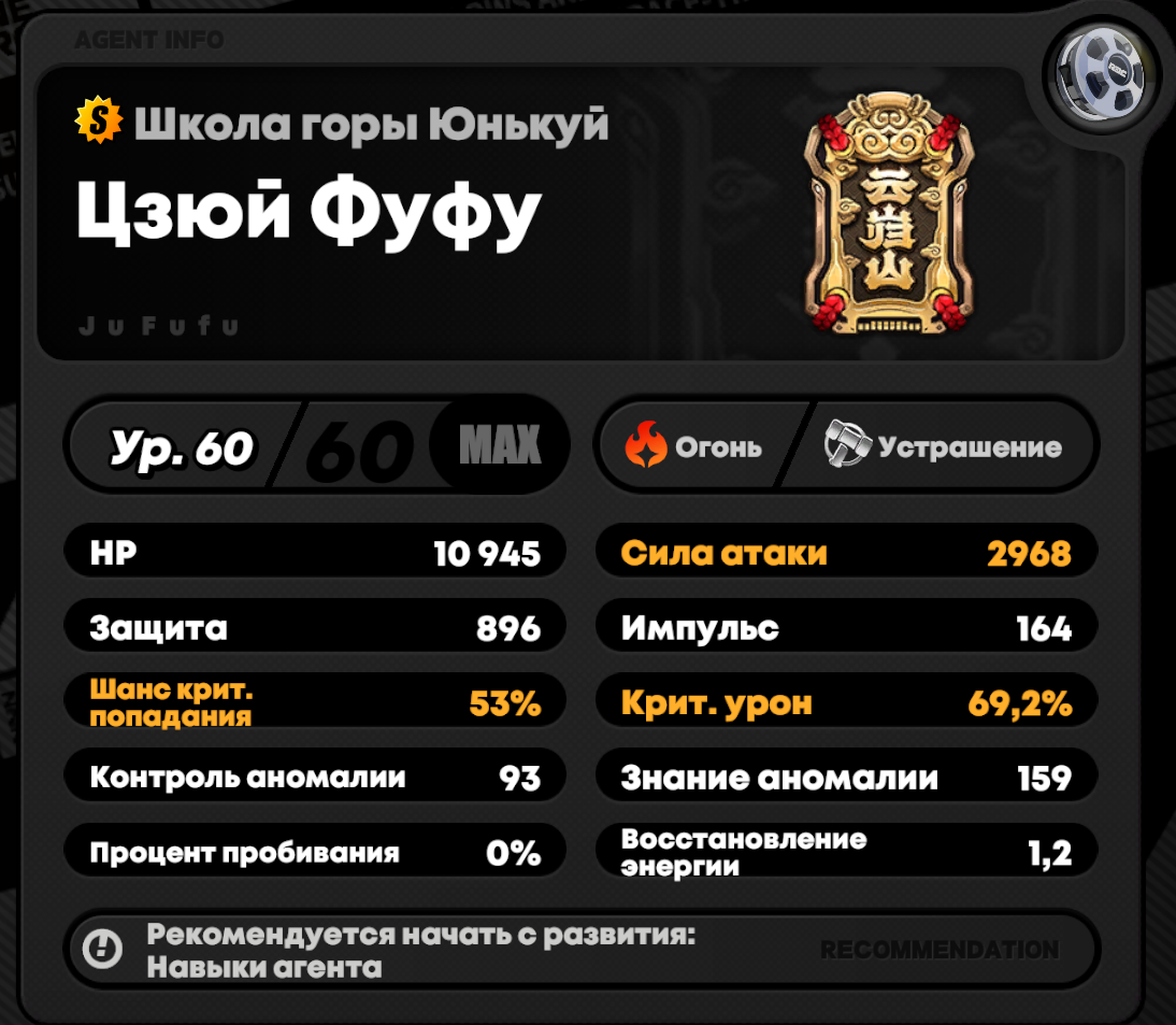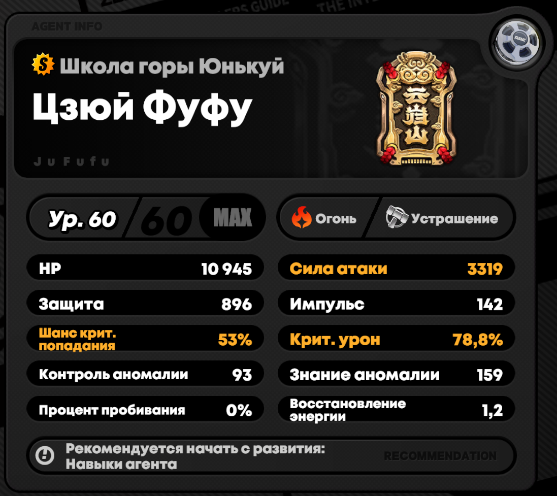 Когда начальная АТК Цзюй Фуфу больше или равна 2800 , каждые дополнительные 100 АТК дополнительно увеличивают КРИТ Урон на 5% , вплоть до максимального дополнительного увеличения в 30%.