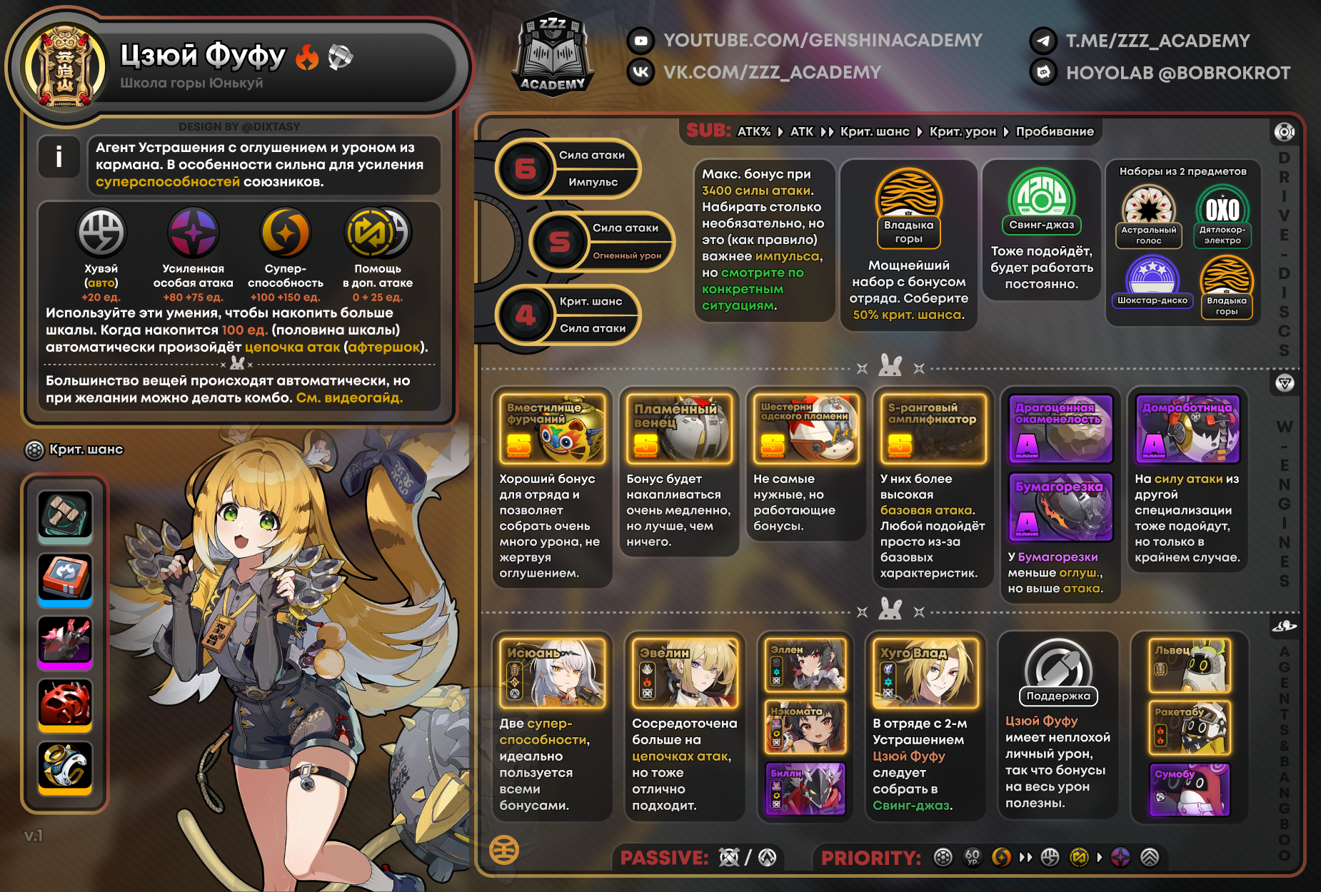 Короче шифу крайне сильно зависит от скорости стана, всё масштабирование урона идёт от стана. Поэтому например панду если с ним играете просто обязаны в импакт одевать, а лучше его нахуй выкинуть и взять второго станера. По идее сюда идеально наверное цезарь встаёт и панама даже намекает что бис пачка с цезарен, но 30% на шир от атаки всё максимально портит