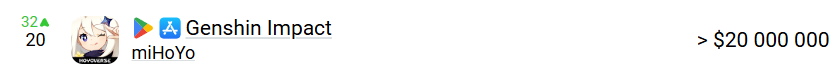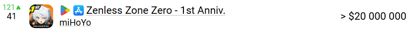За счет других регионов геншин соберет. Даже спустя неделю, он все еще довольно высоко в чартах, особенно в китае. 20 место в китае - это не мало. Так что оставшиеся 3-5кк он доберет. Для сравнения та же зетка, даже с новым персонажем ниже в китае - 23 место.