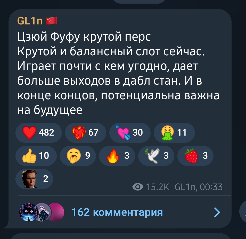 Как же охуенно было крутить Исюань на годовщину. Куча подарков и эвентов, новый сюжет + регион и сама Сэкс-шифу просто 100 из 10 нахуй! Я прям крутил и кайфовал И как же уныло было крутить Тигру сегодня, бля... вообще никакого удовольствия, просто дежурные крутки, открутил и пошёл своими делами заниматься Это конечно не проблема Тигры, она прикольная, но чёт просто вспомнилось как игралось три недели назад. 3400 атаки впизду кстати, 10% КУ не стоят передроча артов. И ТАК СОЙДЁТ!