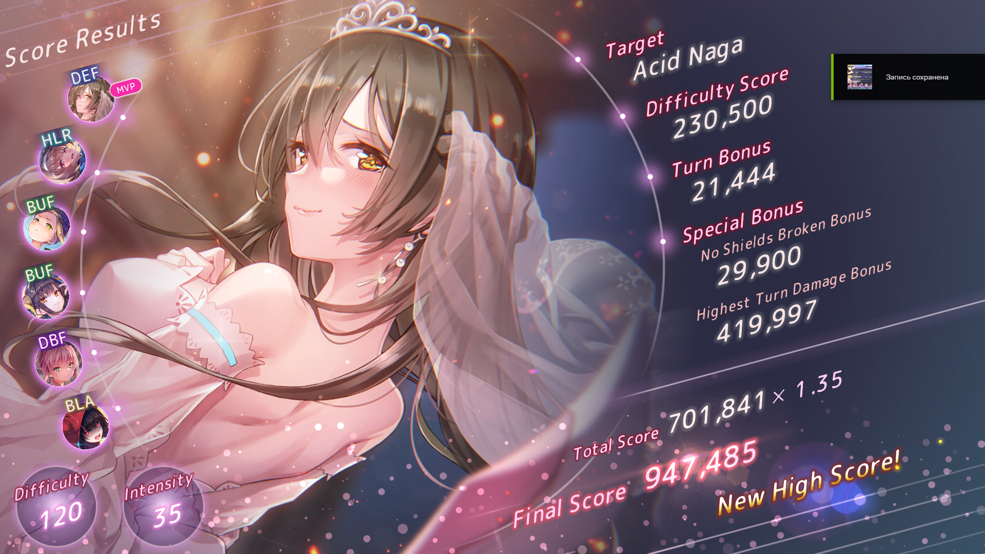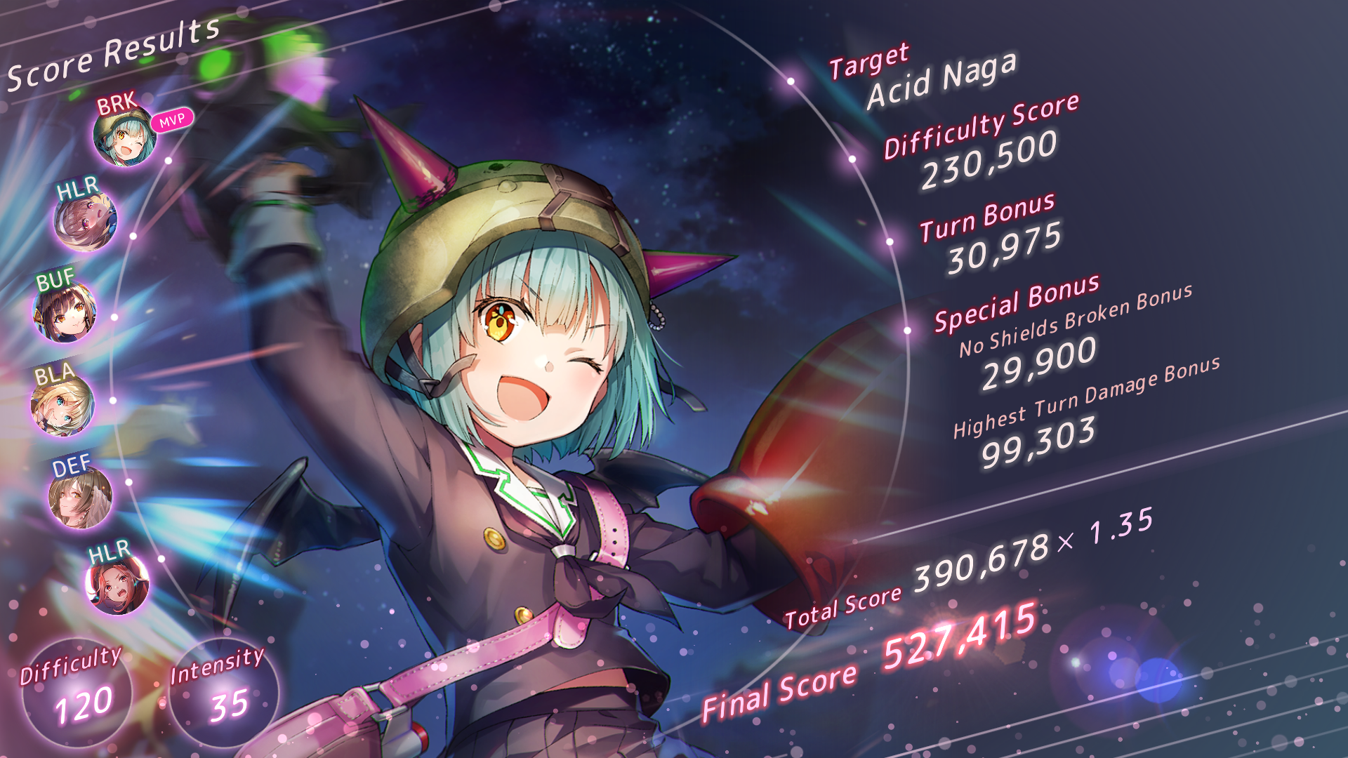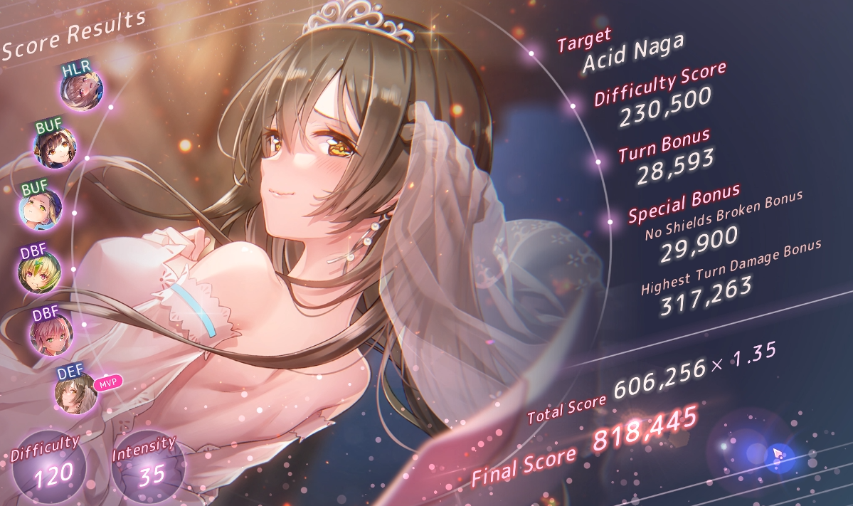Впервые вывел новеньких, недокаченных Инори и Исузу2, снес с нуля до стольки 120/35 нагу. В целом неплохо, но без майнд ая конечно не совсем то, что хочется видеть. Вот была бы вместо Сейки Тама сс5 то был бы ваншот с огромным запасом.