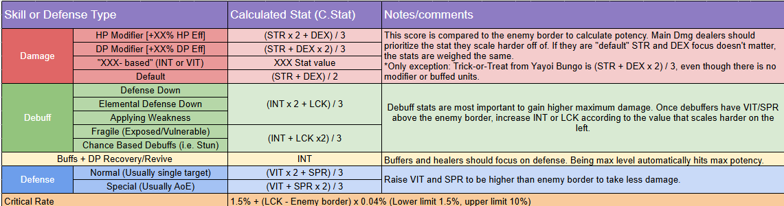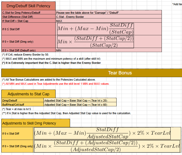 >>5063242 Смотри, ты все понял примерно правильно, но все чуть хитрее. Все считается по формулам с пикрелейтеда, для макисмального эффекта циферка с формулы действительно должна равняться параметр капу+энеми бордеру, вот только все значения скиллов со скейлом 2х+1y при расчете делятся на 3, скейл 1х+1y делится на 2 и только скиллы с единичным скейлом считают статы в полном объеме. По ощущениям тяжелее всего набрать кап эффективности именно дебаферам - у них и кап большой, и статы на скейл неприятные. При этом бафы никак энеми бордер не учитывают, и вот они практически в любом случае на максимуме.