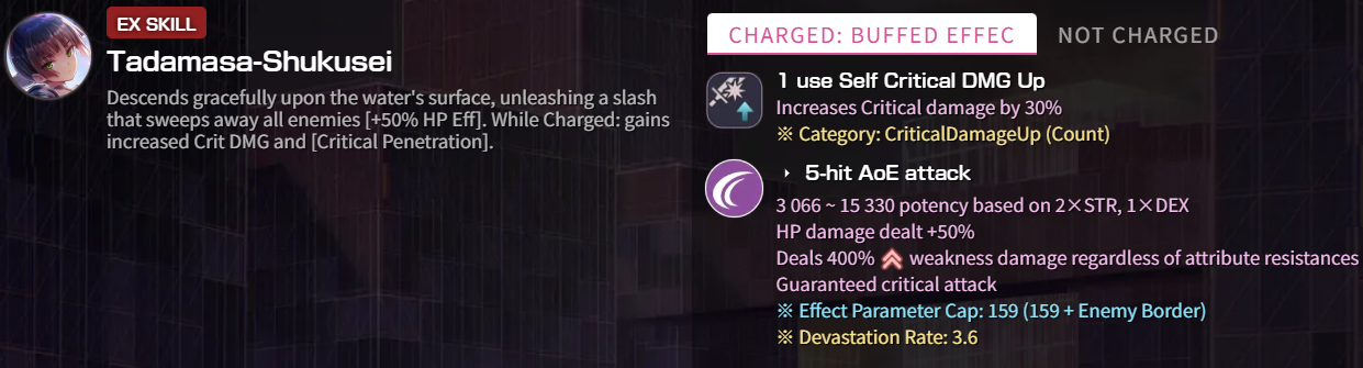 >>5104557 Ты критуешь и у бордера вычитается 50, 159- 50 = 109 силы выше 360 копишь и выдыхаешь. Я не помню учел ли я крит в таблице или нет, давно делал и забил.