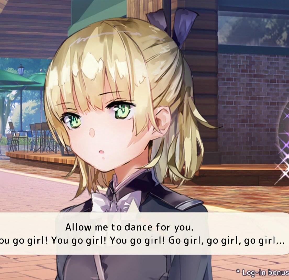 Аккурат перед коллабом закрыл гештальт и прочел эвент Мион и Канаты. А до этого вчера провел внушительную подготовительную работу по развеиванию терры инкогниты над 31-Ф, прочитав все их социализации и реколлекшены, последним нетронутым остался только 31-Д. По итогу сквад очень сильно обрел красок у меня в голове, даже начал разглядывать синергию между персонажами, до этого сквад мне казался набором рандомов без взаимодействия друг с другом (ну кроме хозяйки со слугой. Неожиданной фавориткой в скваде стала Маки, она оказалась очень забавной и с двойным дном, за которым она предстает романтичной книгочейкой, бывшей смотрительницей школьной библиотеки, а южный акцент ее фейковый. Что неправда. Или правда?