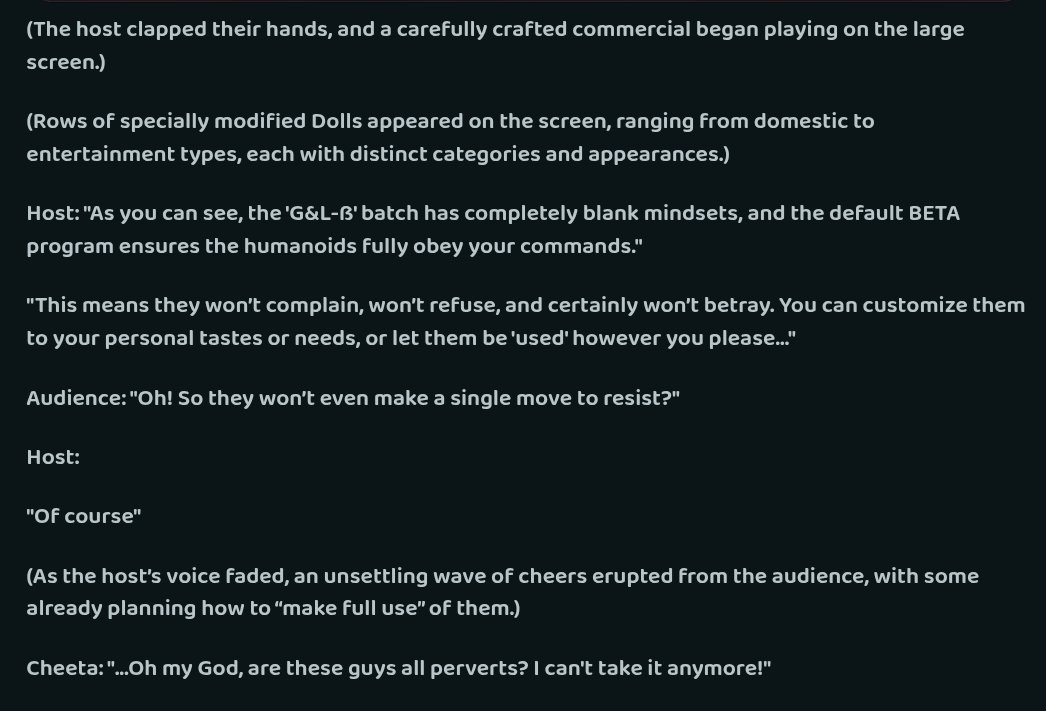 >>5082593 Дублер актеров-детей для сложных/опасных сцен, например. Или фальшивый друг для маленьких социопатов из богатых семей. Ну и очевидная функция для тех, кто хочет на остров Эпштейна, но не хочет рисковать.