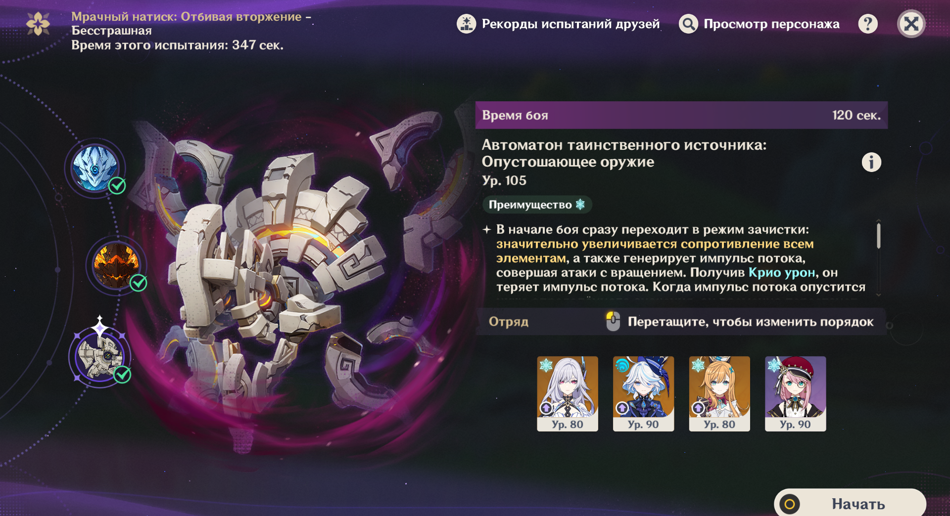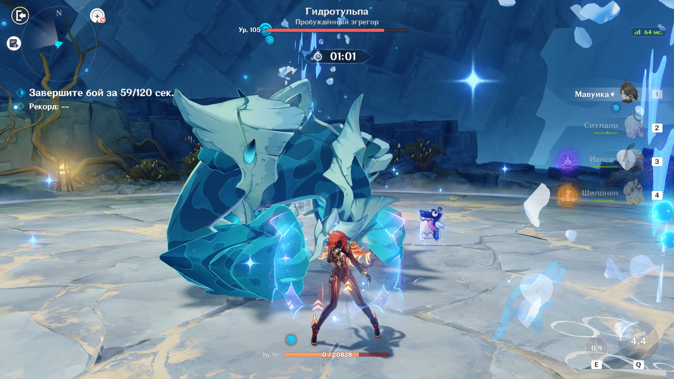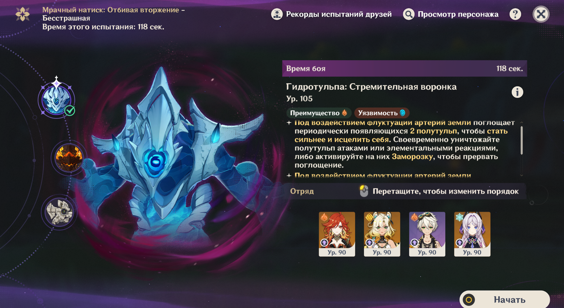 Ладно, это было убого и жалко. Тем не менее даже такая тима может опустить его хп до милиписечки. Значит контент проходим и можно добавить сюда колясочку в виде сильного гидро или крио. А может даже и Навию