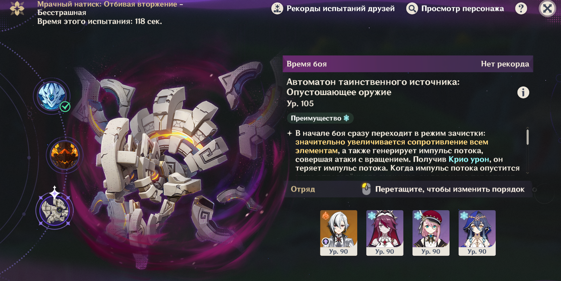 Он проходим с0 чемпиками, да, но нужно выдрочить идеальные арты и иметь правильных чемпиков. У меня персы одеты вполне прилично, но не идеально. Выдрачивать идеальные арты, чтобы залутать еще 10% урона сверху, люто долго, это надо в несколько раз больше времени на фарм потратить. И крутить именно "правильных" чемпиков, каких хочет ляо, я тоже не хочу.