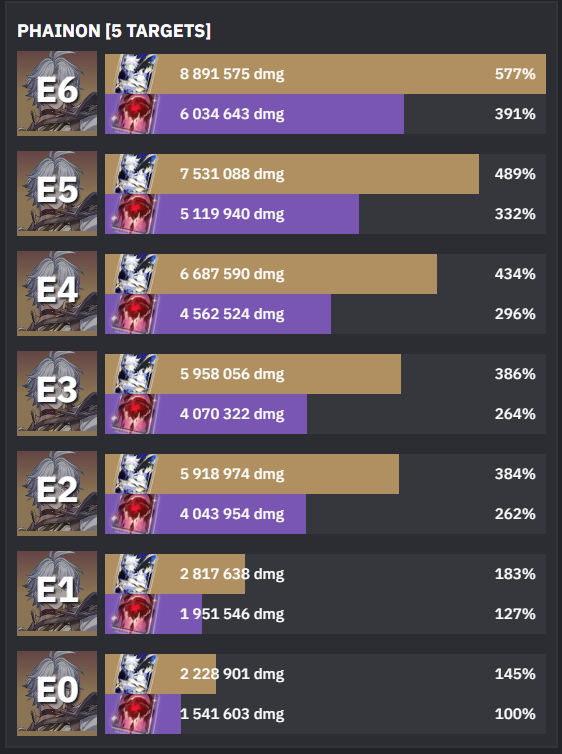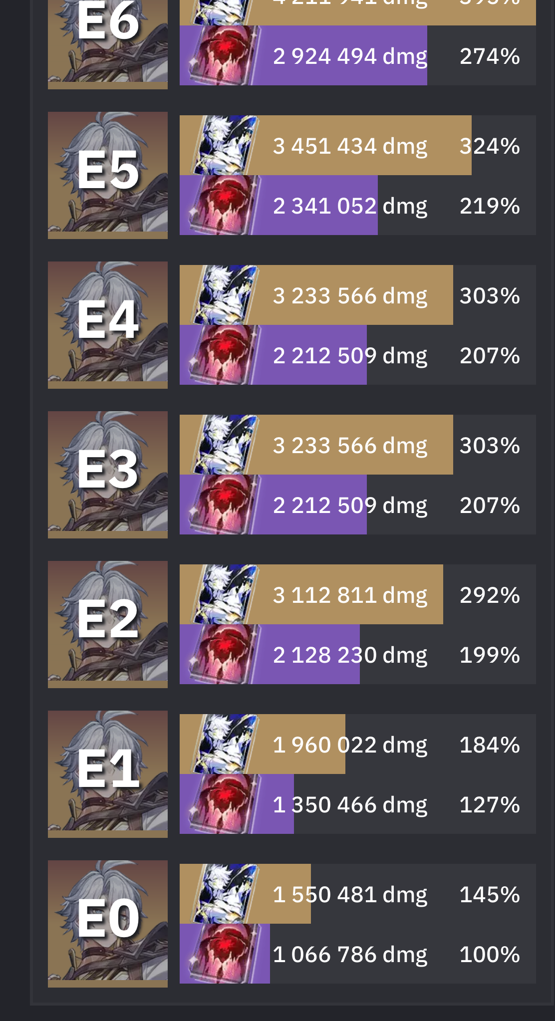 >>5111757 e6 не даёт ощутимого результата, ключевое это тима, обмазывающая персонажа бафами. Ближайший пример - Ахерон, у неё e2 это максиум, всё остальное не даёт сильного эффекта, играет от ульты, бафают только новые персы, по сути помогающие ей чаще и сильнее ультовать. С сейбер аналогично