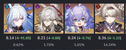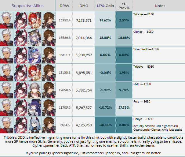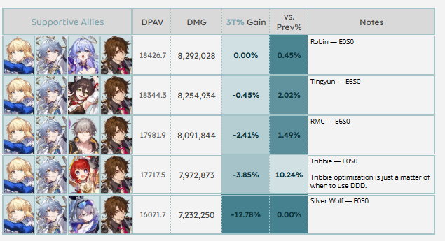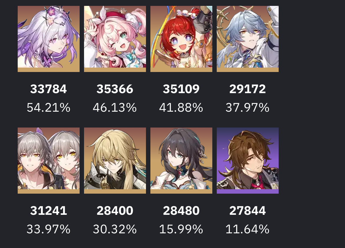 >>5107534 Трибби/Зарянка>Гиацина/новый Даня>все остальное. Так вижу для ньюфага. По пути кого-то из дд вытащишь кто нравится, похуй кого, они в одном тире все варятся и все проходки прямо зависят не от личной силы а от расставленных капельниц лично Ляо. Ну и Кирену через 3 патча палюбас забирать, все остальное очень сильно обсуждаемо. Так вижу кпд для ньючурла