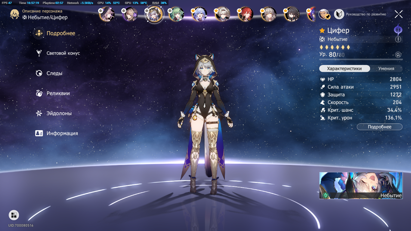 Делал сегодня ачивки. Пока набивал 10 лямов урона на кошке, прогрелся пиздец как её крутить, но у меня нет Фэйсяо и Дыни, сейчас пиздец как ломает слить круток в неё. Она ооооочень милая, как же япусиковая актриса тащит.
