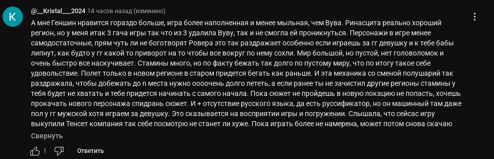 >>5117606 Попробовал вуву - очень понравилось, попробовал после вувы геншин - не вытерпел и дропнул, дальше попробовал хср и вроде как понравилось, оценил его правда хуже, чем вуву.