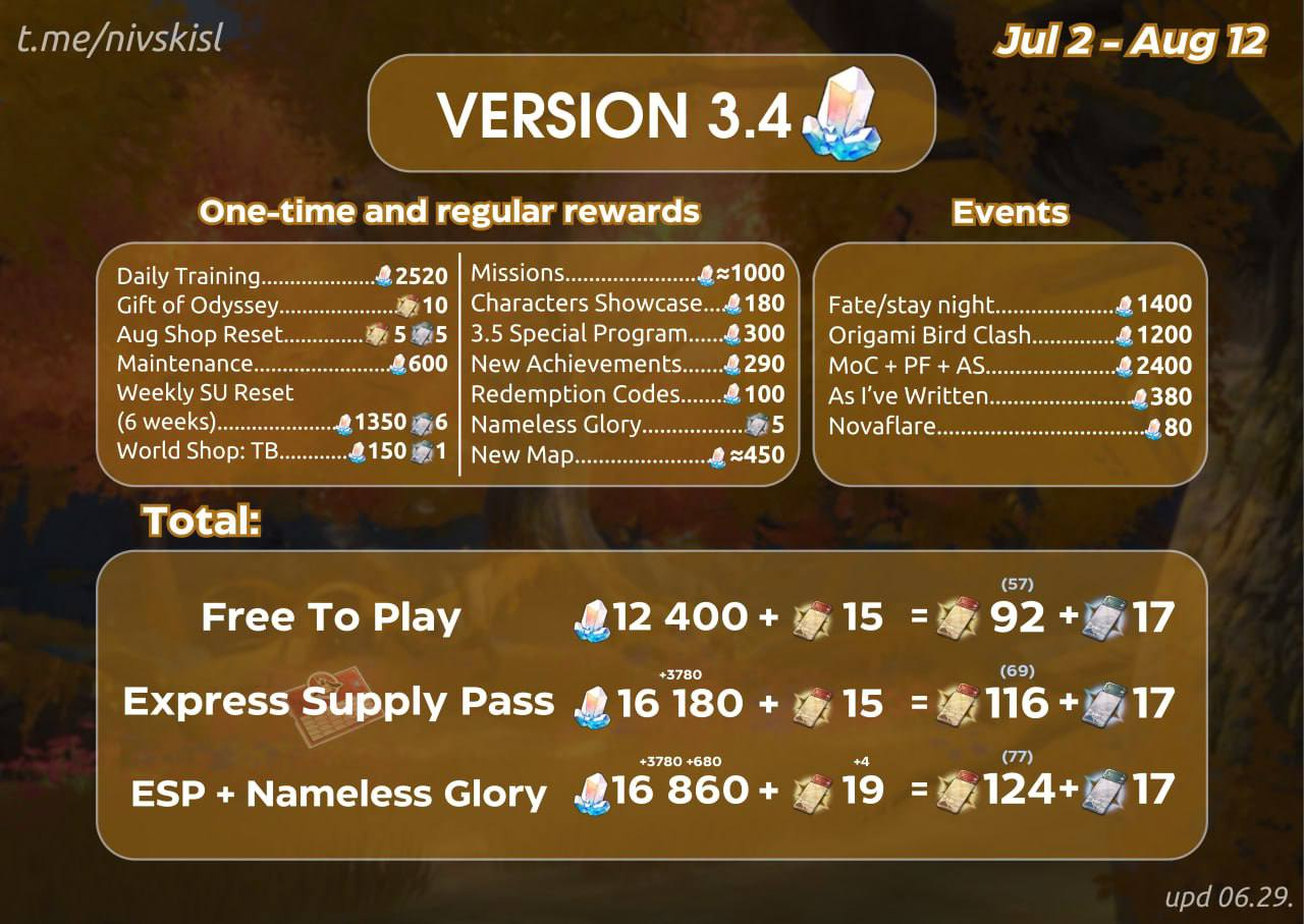 Как успехи с префармом на 3.4? У меня вроде успешно, но Сейберушке нужно балансить криты, а у Арчера резко повезло на всех артах, кроме базовых перчаток и шляпы вжушк. И как назло придётся 2 недели фармить квантсет чтобы их нормальные выбить