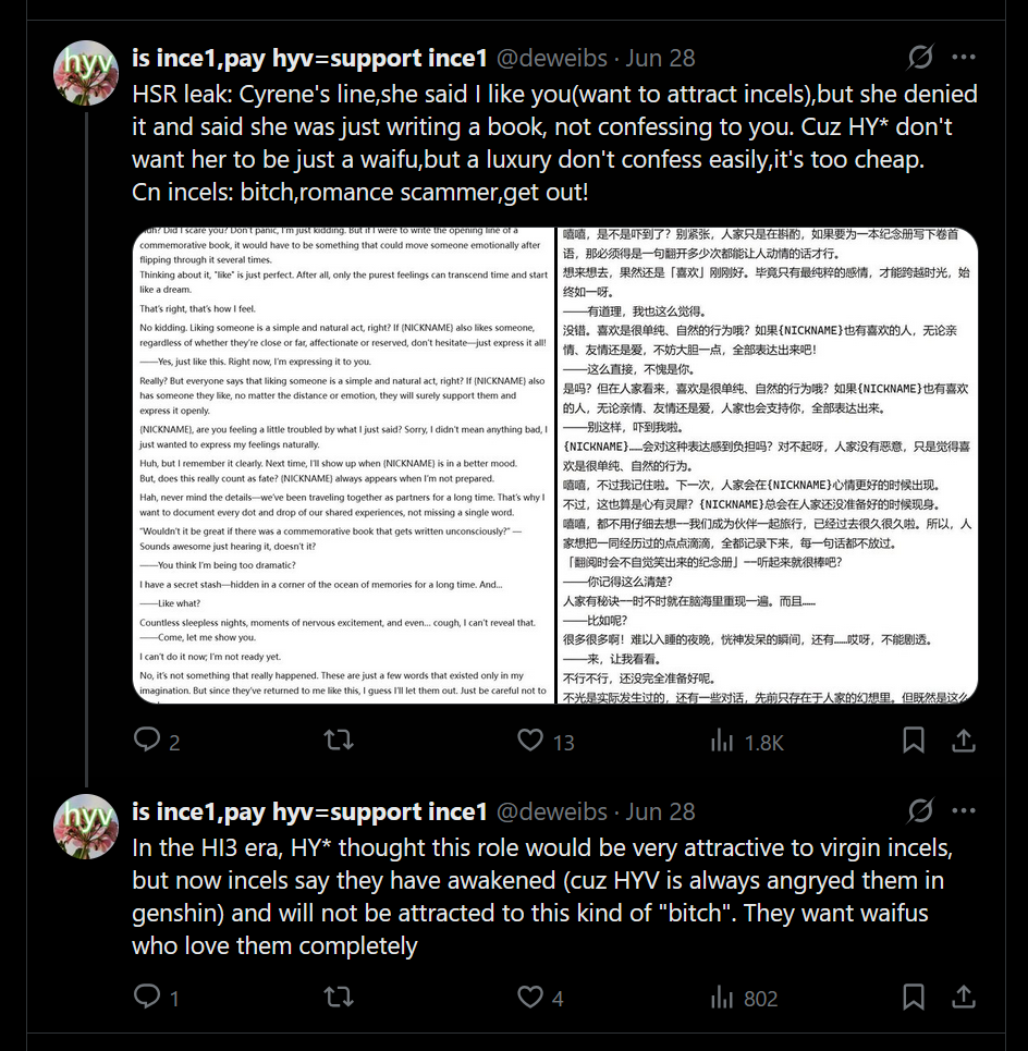 Аноны прошел Белобога - а там дальше будут видосики как в Г? Единственное ради чего играю в Г - это сюжет про Каэнри'ах и вот это вот всё. Про Архонтов тоже бывают хорошие видосики. Думал в Хонкае тоже так будет, а там просто анимированные картинки показали и всё. Дальше так же будет или навалят сюжетных видео красивых?