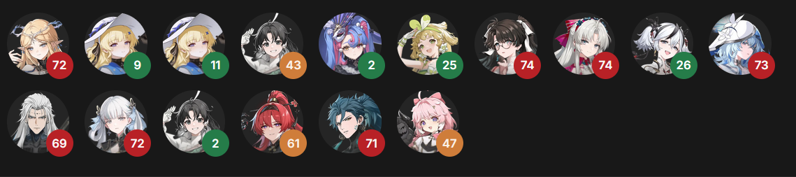 >>5133558 Вот это всё у меня 80 с 80 пушками(кроме Жинси) с 6/6/6 или 7/7/7 скилами и с эхом по +25 которые половина с даблкритами, а половина с говном. То есть даже не 90 и 10/10/10 и не все фул топ эхо с даблкритами. Ресурсов в игре катастрофически не хватает, учитывая что Жинси я закинул еще на 60 уровне.