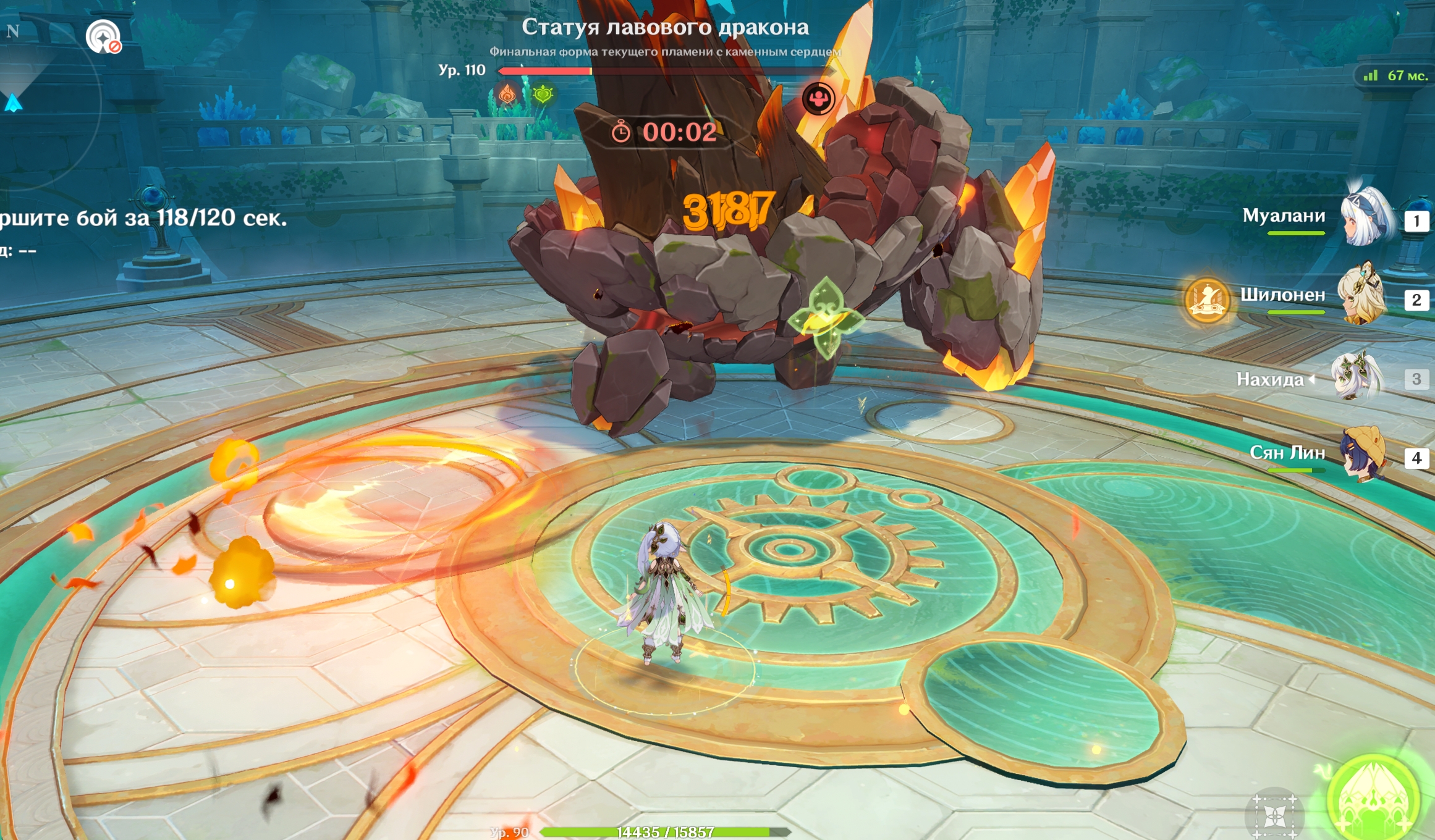 Я вообще не понял, как дракону набивают шкалу. Сколько видосов не смотрел, там и с Шеврез, и с Сянкой, и с Нахидой - пук пук пук и все, дракон лежит. Спокойно выходят на вторую ротацию и убивают. Я сколько не траил, ВООБЩЕ не получается его два раза уронить успеть, на второй раз уже таймер под конец заканчивается. Только с Коляном смог стабильно его поджигать, но с другими чарами даже близко нет. В чем прикол так и не выкупил.